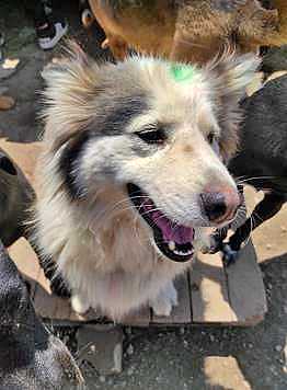 Alle honden werden tijdens het bezoek van Trees ontwormd, ontvlooid en gevaccineerd, een huzarenwerkje, waarbij we schapenstiften gebruiken om aan te duiden wie reeds behandeld werd geweest ; dus liepen de hondjes rond met een kleurke. (zie beide foto's van Haski hierboven)