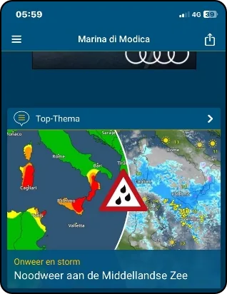 Reeds 48 uren trekt er een heel zware storm over Sicilië. Winden van meer dan 100km , bakken regen en golven van 6 a 7 meter.