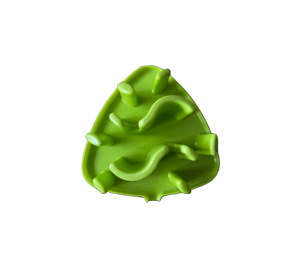 Leuk compact licht groen anti-schrokbakje in de vorm van een dennenboompje.