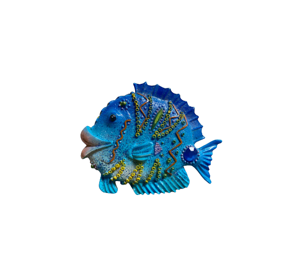 Supermooie magneet in de vorm van een blauwe vis, met mooie decoraties en glitters.
