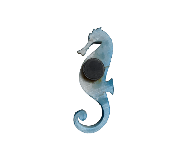 Supermooie magneet in de vorm van een blauw zeepaardje, met mooie decoraties en glitters.