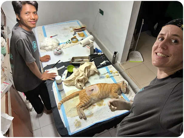 Ons team is inmiddels versterkt met een nieuwe dierenarts, Dr. Isna, en een dierenartsassistent, Dr. Hasan, onder leiding van Bethan, die beide klinieken op Gili Air en Gili Trawangan beheert. Ervaren vrijwillige dierenartsen blijven ons lokale team trainen en ondersteunen.